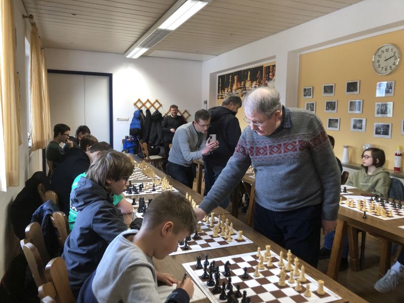 Gegen 14 Kinder und Jugendliche trat Sandor an, aber gegen die über 50-jährige Erfahrung gab es für die nichts zu holen, Sandor gewann - erwartungsgemäss - alle Partien.